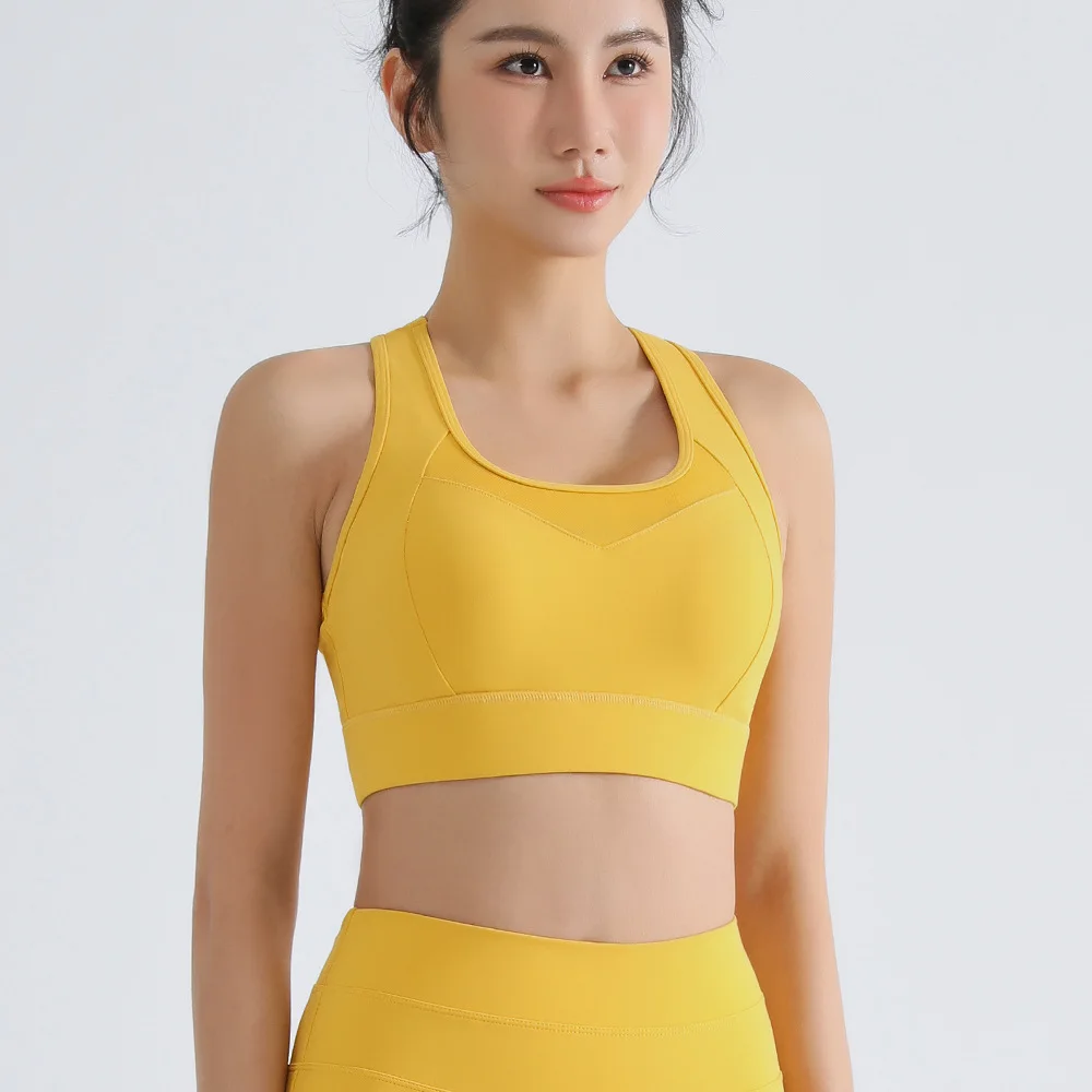 NOVO Alto suporte fixo copo shockproof malha volta sutiã esportivo