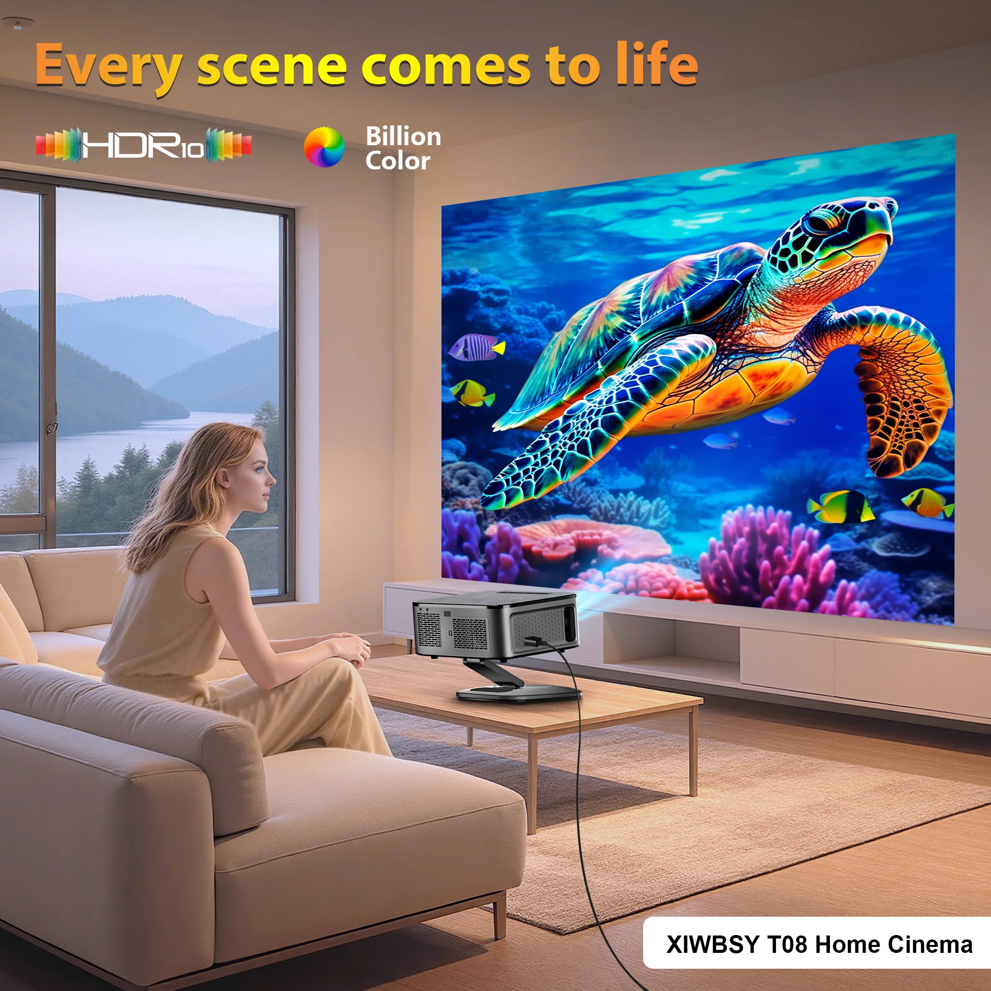 - > XWBSY 2025 T08 Projetor 40000Lumens Projetor Android 8K Decodificação Projetor AutoFocus Projetor LED 1080P Home Theater Beamer