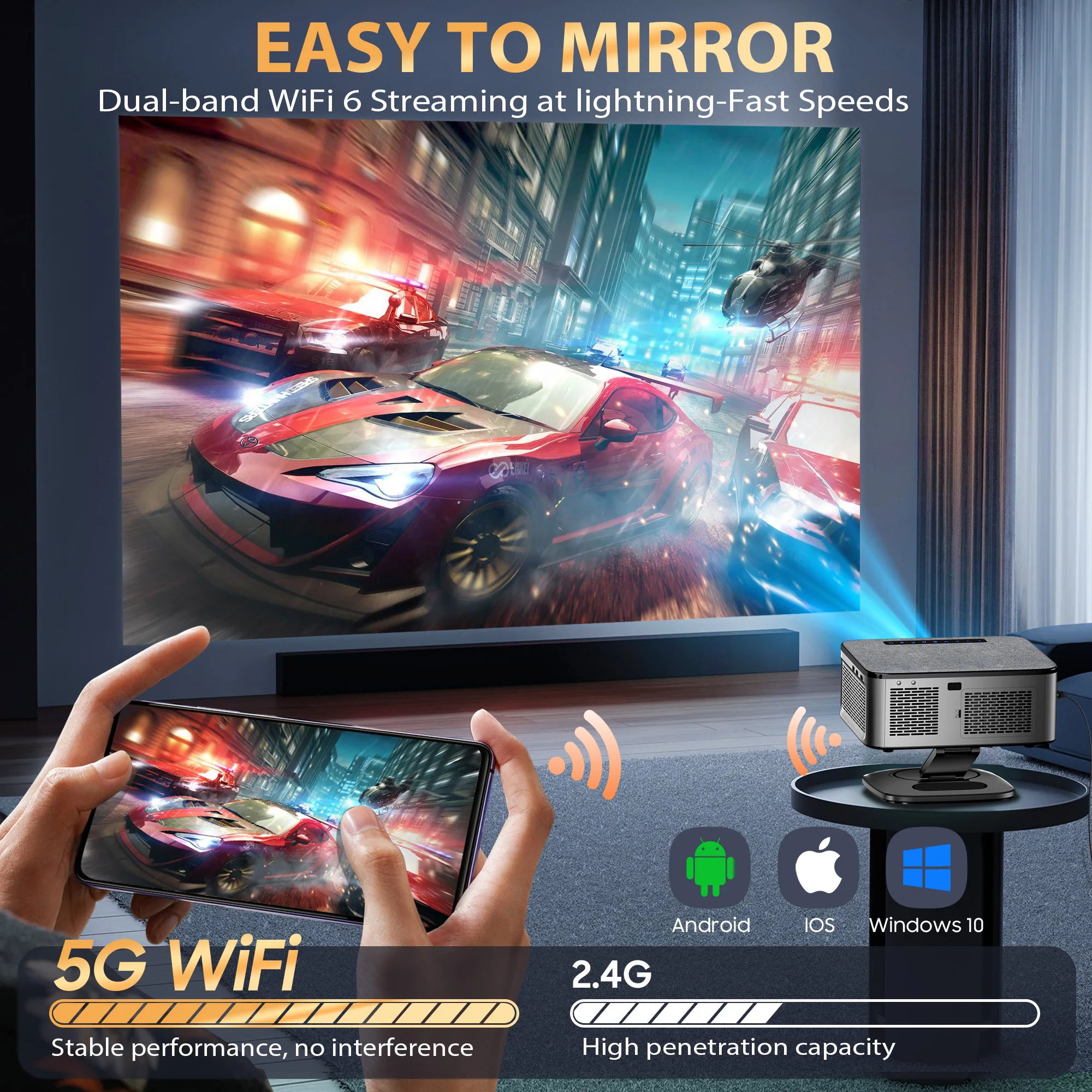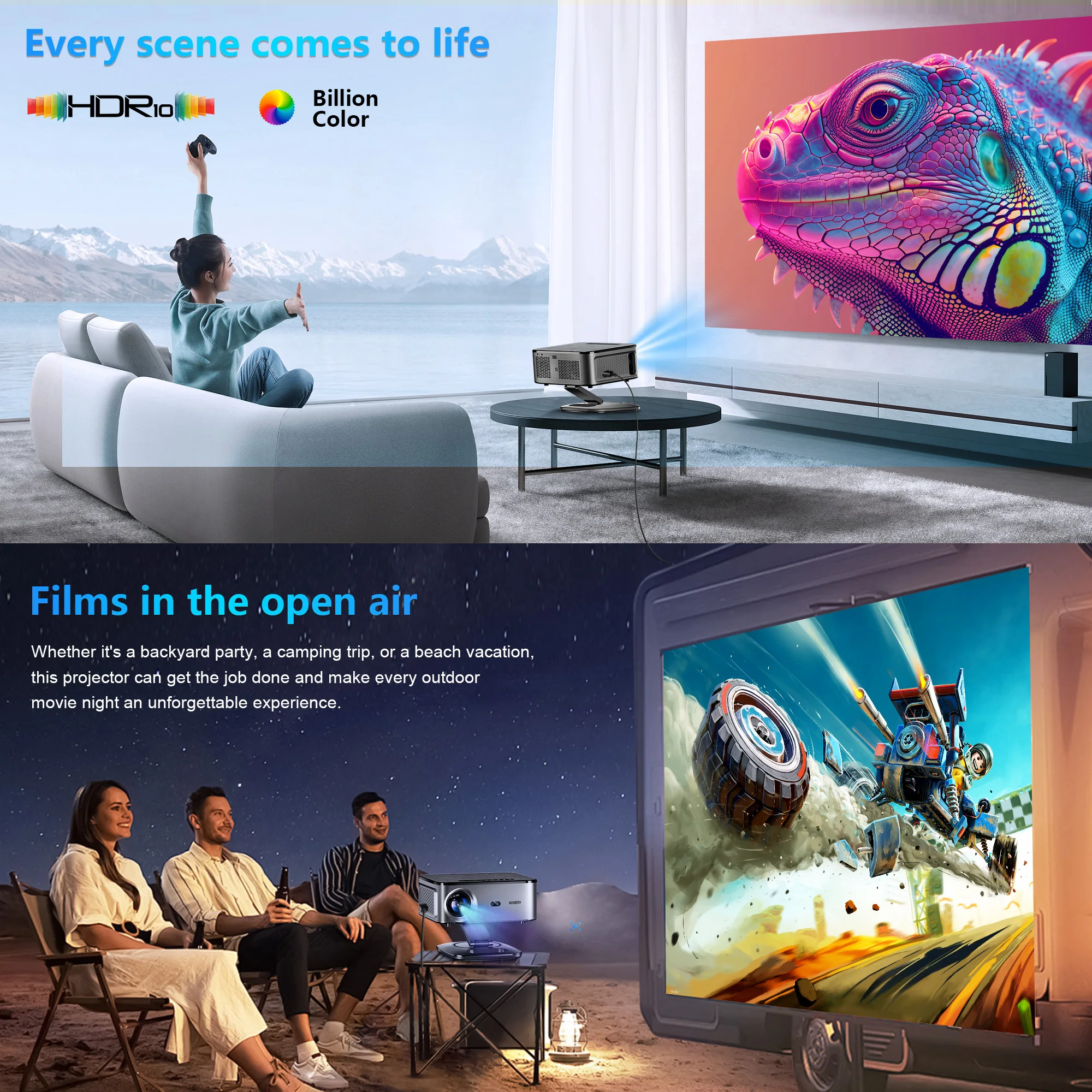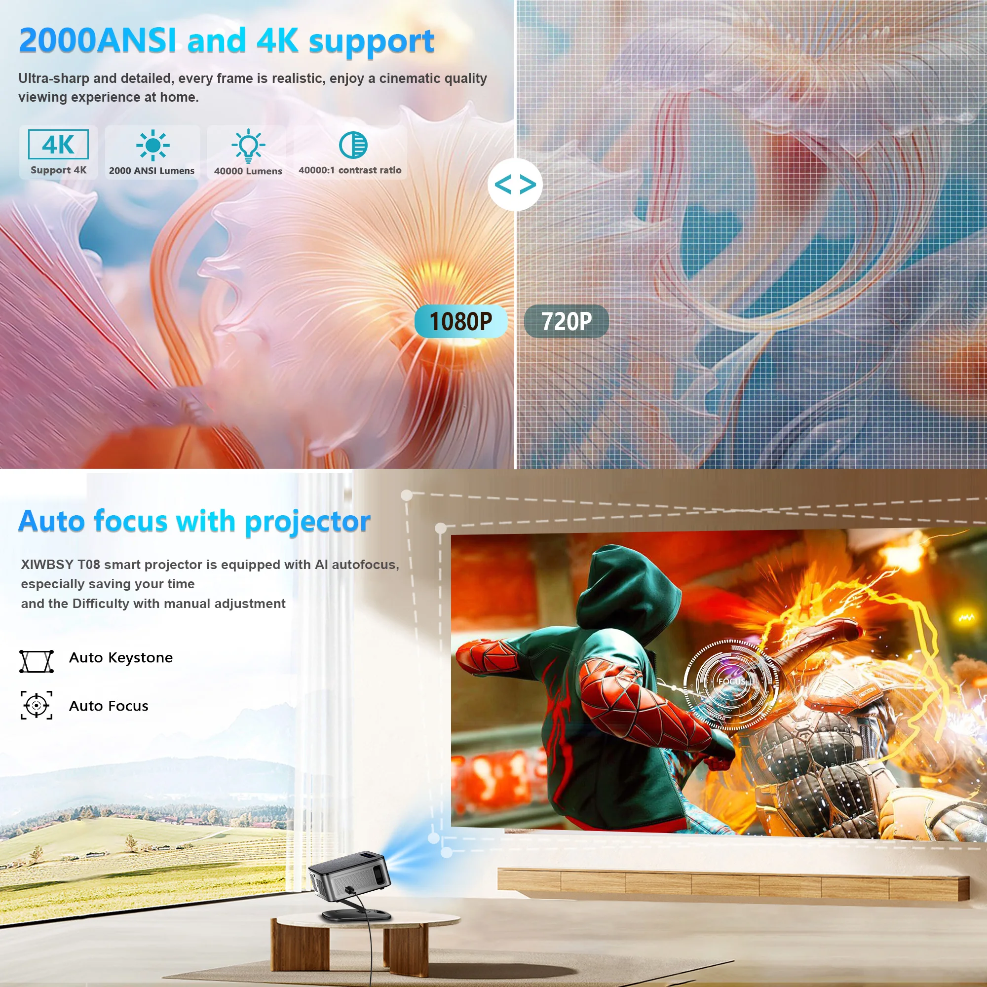 - > XWBSY 40000Lumens Projetor Portátil 4K Android 12.0 Projetor de Luz Diurna 64G 8K Vídeo Home Theater AutoFocus Projetor Inteligente