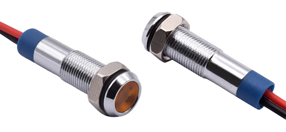 YIDI-LED Lâmpada indicadora de metal para motocicleta, luz piloto do fio, vermelho, verde, azul, âmbar, branco, 6mm, 6V, 12V, 24V, 220V, AC, 5 PCs, 10PCs