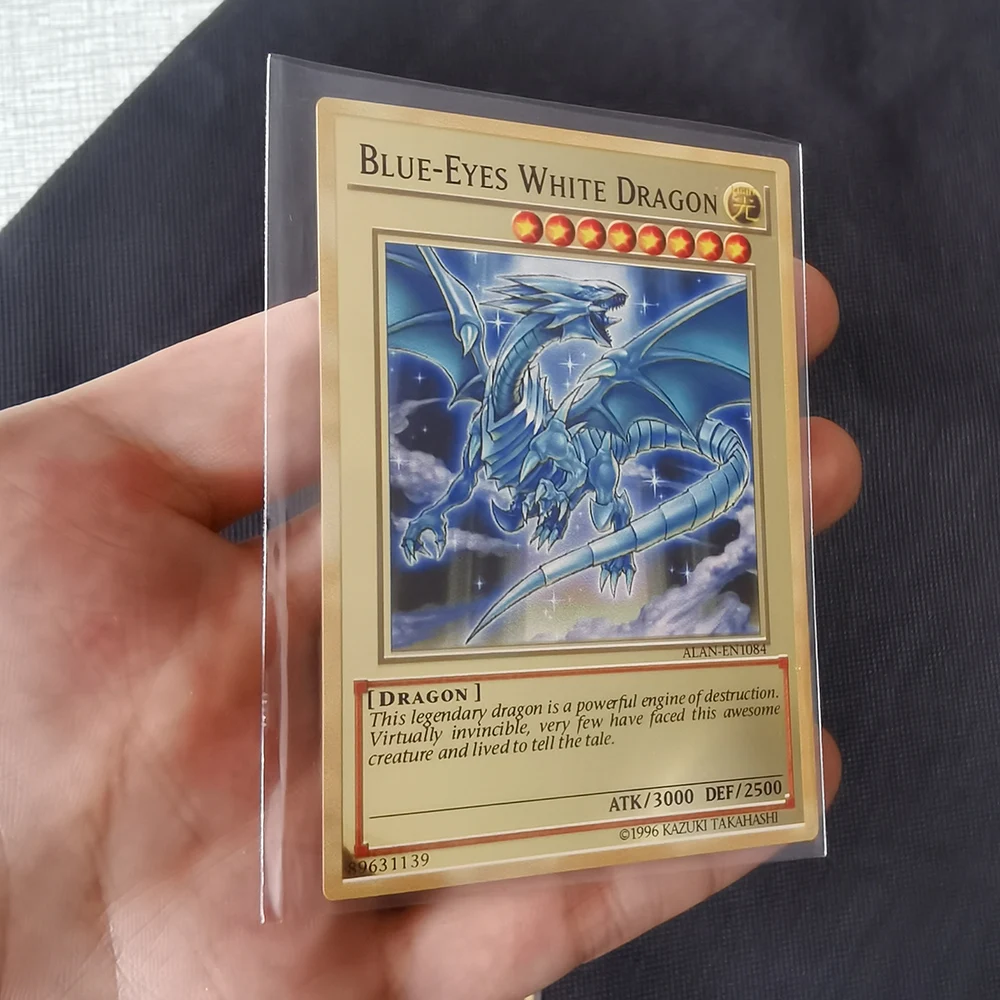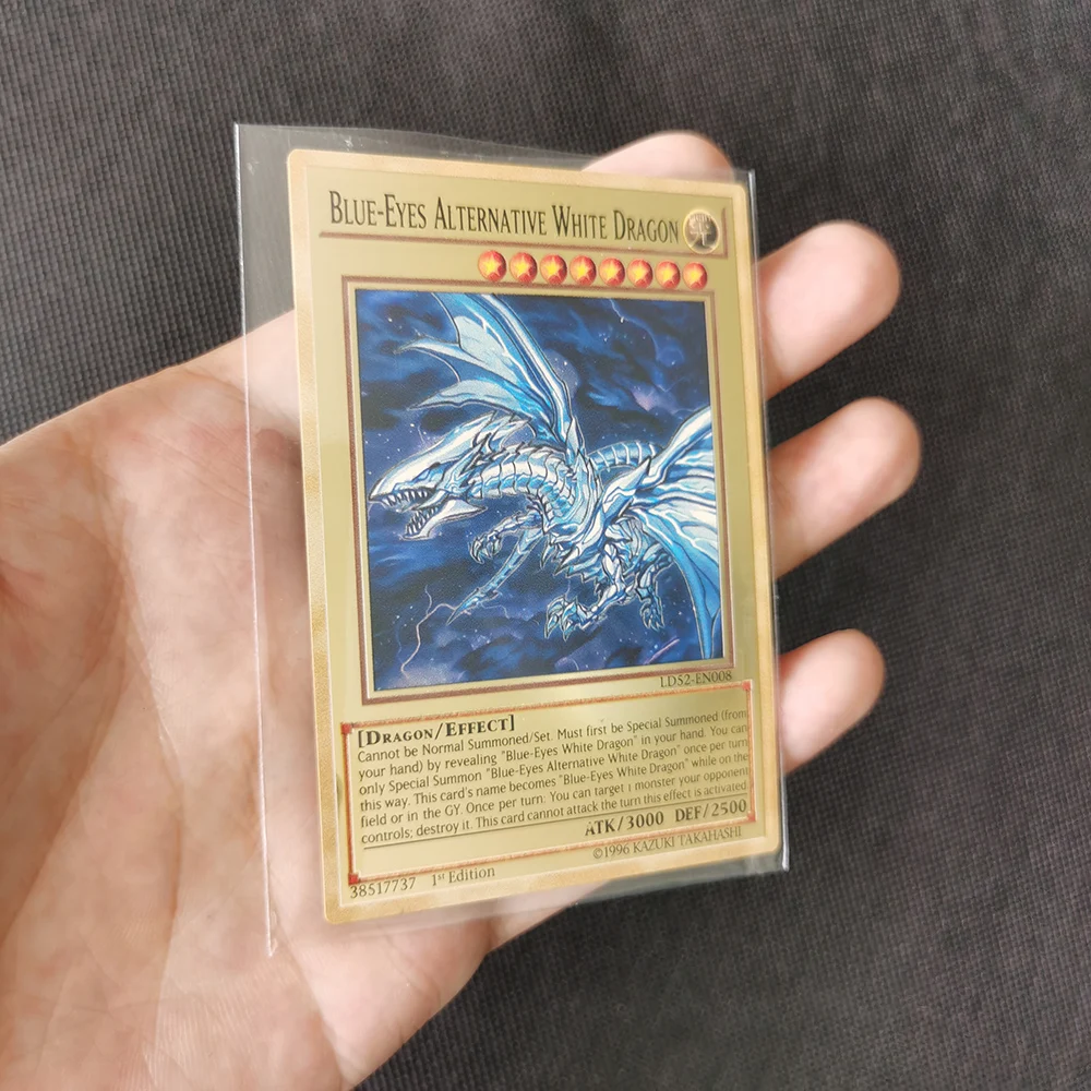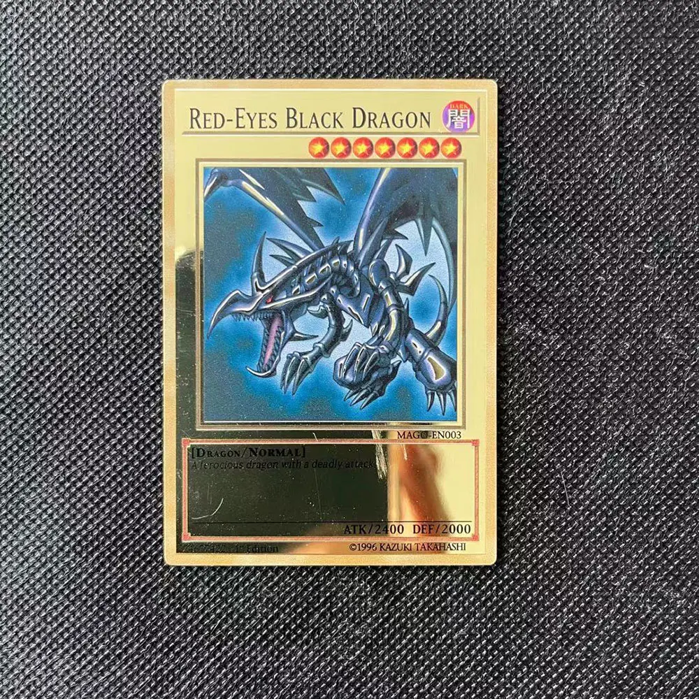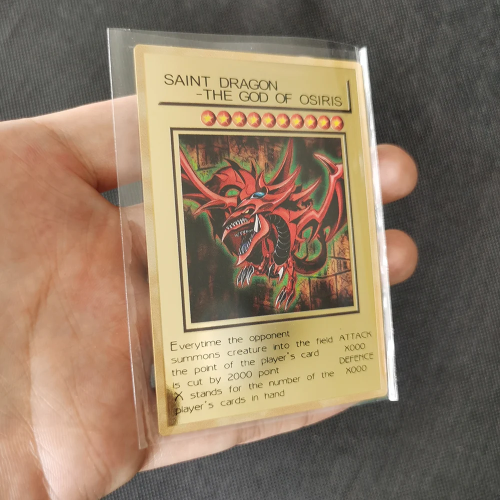 - > Yugioh cartões de metal dourado yu-gi-oh liga coleção cartão olhos azuis escuro magial obelisco slifer ra crianças presente de aniversário de natal