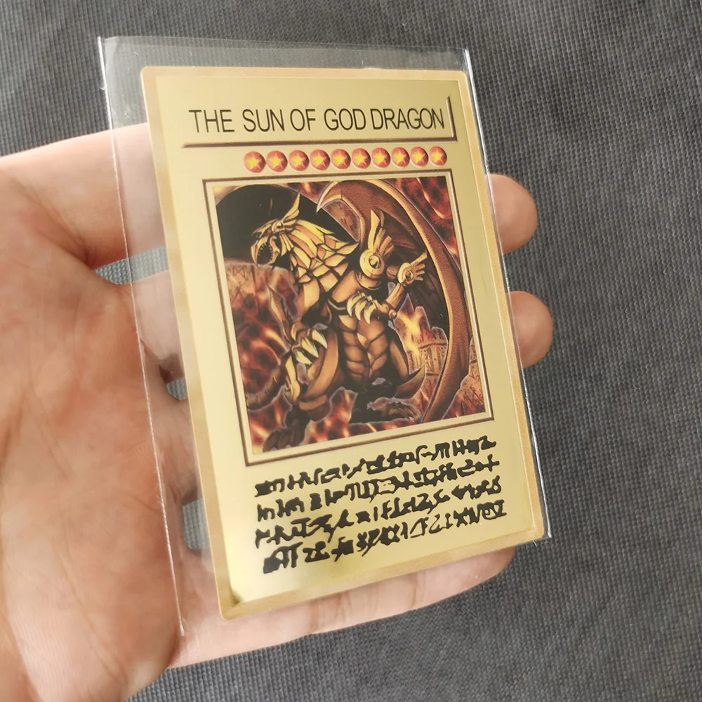Yugioh cartões de metal dourado yu-gi-oh liga coleção cartão olhos azuis escuro magial obelisco slifer ra crianças presente de aniversário de natal